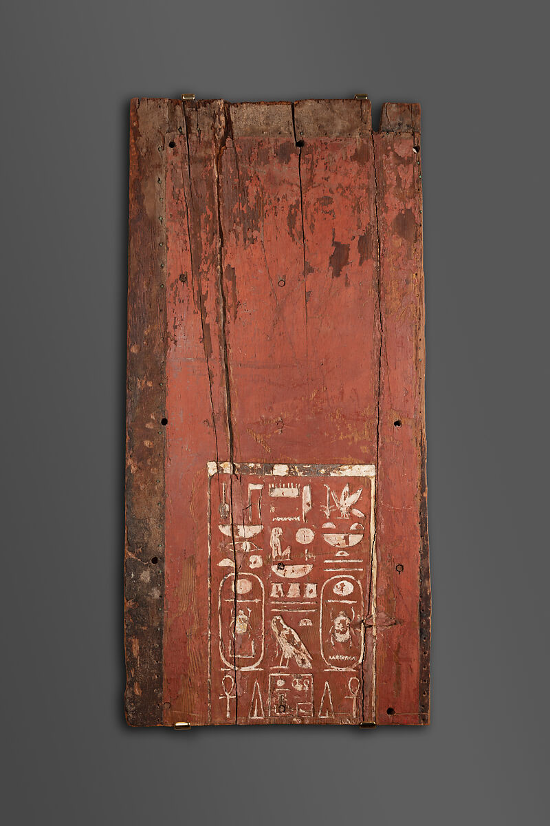 Wooden door, Metropolitan Museum of Art, New York 22.2.26. Painted red, with inscription probably originally referring to Thutmose I and Hatshepsut, whose name was changed to Thutmose II during the reign of Thutmose III. There are traces of gilding of the inscription (exact alloy unknown).