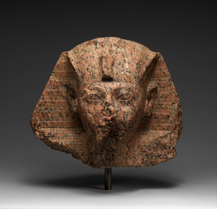 Head, granite, Metropolitan Museum of Art, New York 35.3.297, found in the area of Ramesside temple, could be from Khenemet-ankh or Kha-akhet. Although without name, it probably represents Hatshepsut. Similar to MMA 28.3.18.