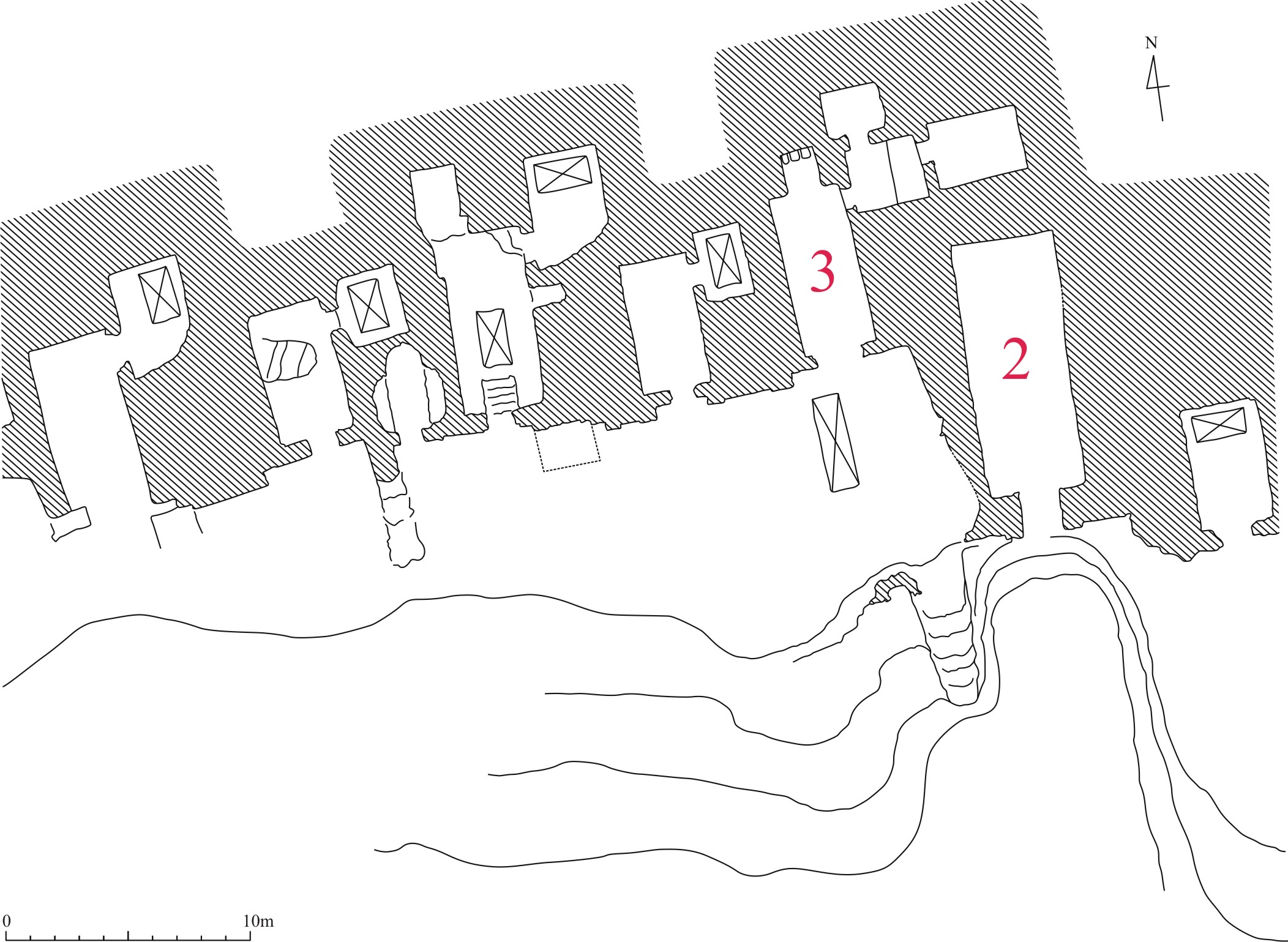 The main cemetery of the elite of Elkab is located in a freestanding rocky hill approximately 50m high, at a distance of 450m north-east of the city walls. The hill is separated from the rock massif by a narrow ravine. Over 300 tombs were discovered there. Among them, there is a row of tombs situated in the south slope of the hill, facing the river. Two of these tombs cut in the rock can surely be dated to the reign of Hatshepsut.