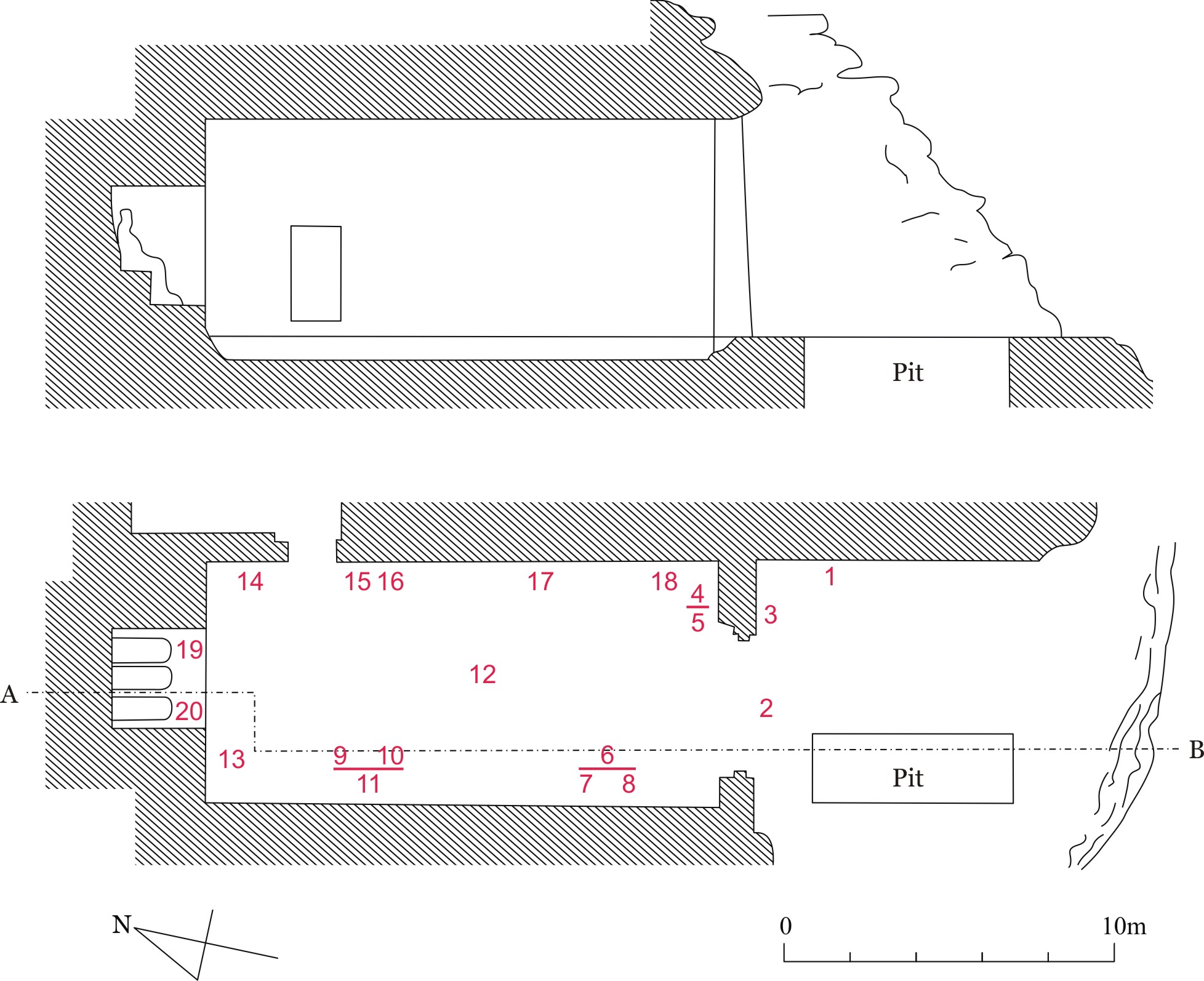 The tomb of Pa-heri is located in the main necropolis of Elkab in a row of tombs cut along the side of the cliff, on the left of the tomb of Ah-mes Pen-Nekhbet (no. 2), but on the higher level than the latter. It was oriented along the north-south axis and faced the Nile and the town.